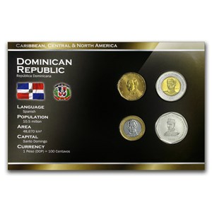 Buy Dominican Republic 1 Peso 25 Pesos 4 Coin Set Bu Apmex